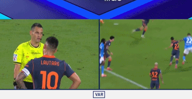 第15分钟,斯皮纳佐拉后场横传出现失误,劳塔罗获得绝佳机会,近距离抽射被萨维奇神勇化解。第29分钟,迪洛伦佐杀入禁区,被姆希塔良绊倒在地,裁判根据VAR回放判罚点球,随后国米选择换人,姆希塔良被换下,泽林斯基登场。
